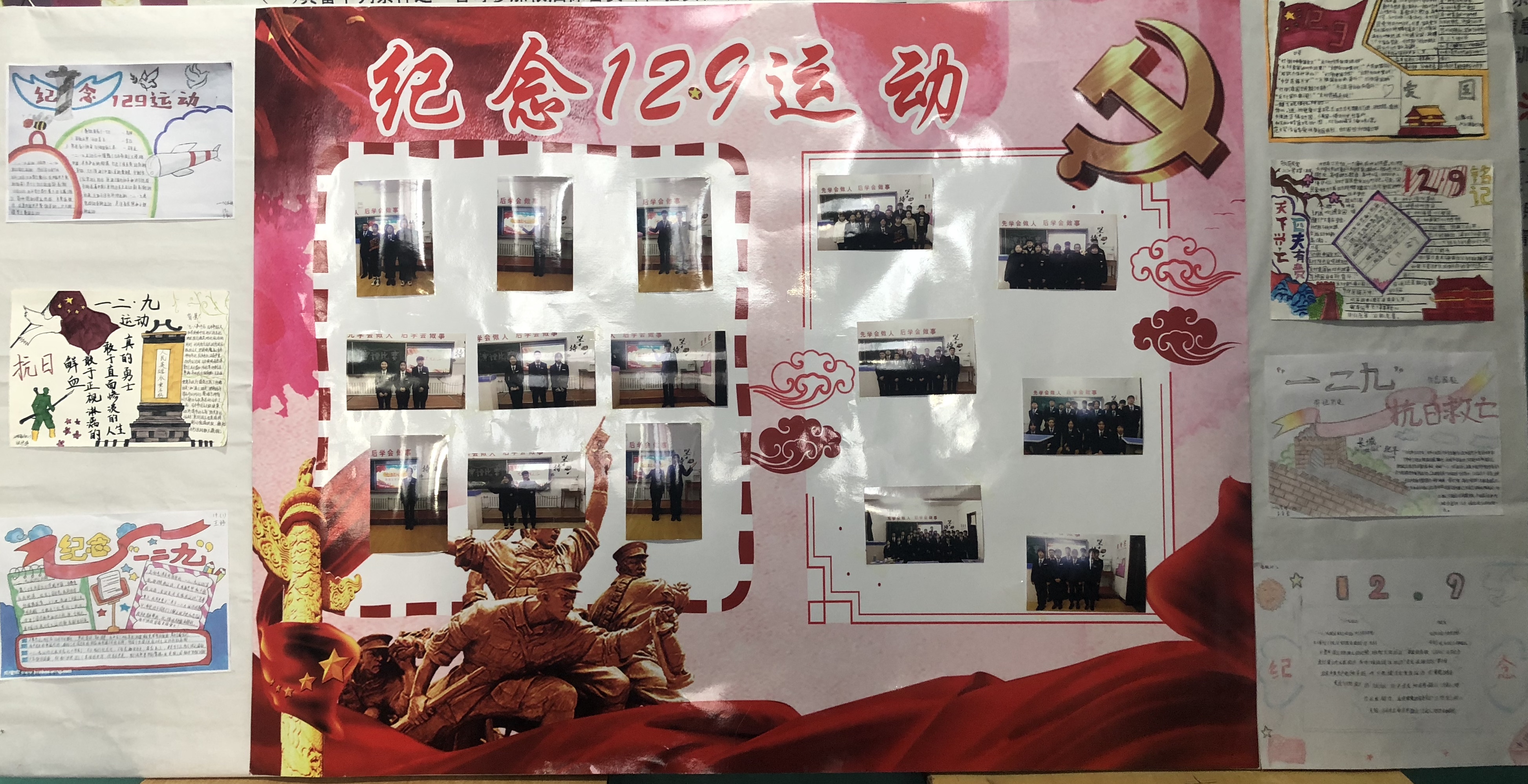 我校团委在教学楼醒目位置用张贴海报及组织各班制作手抄报的方式对12●9运动进行了有力宣传并以话剧和演讲比赛的形式对此运动加以纪念,经过近一个月的紧张排练各班于12月4日进行成功录制,并且通过微信公众号以网络投票和教师评选的方式决出最后的赢家。
