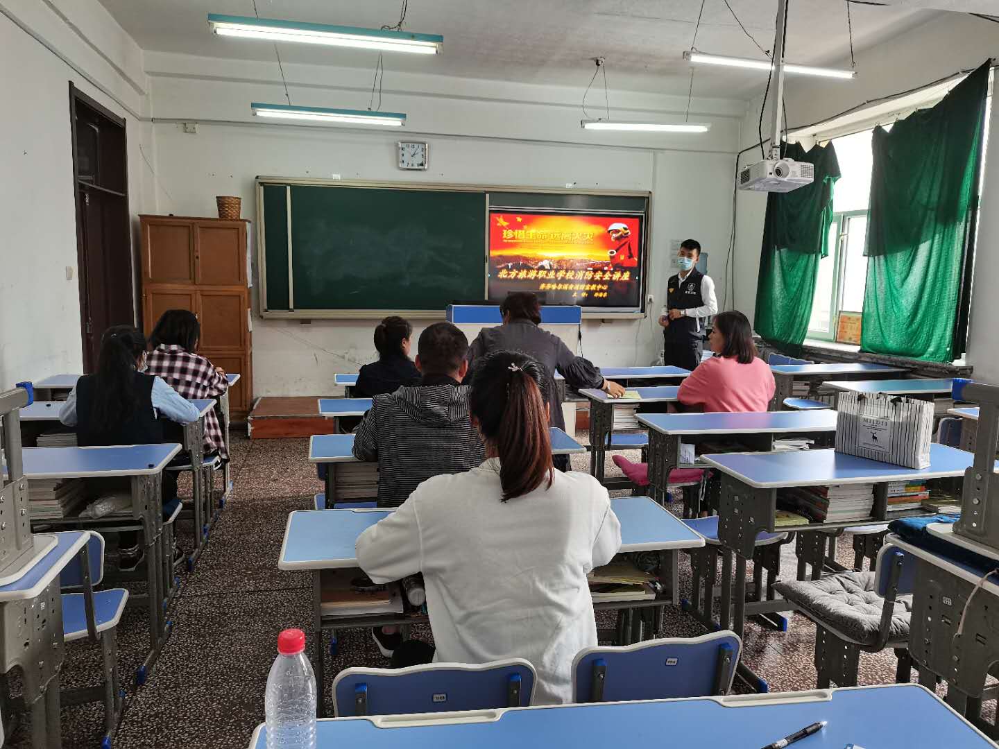 我校刘老师接合学校实际情况,为学生讲解了消防安全的重要性。她在讲课中指出,如何预防火灾和火灾发生后怎样冷静处理情况。