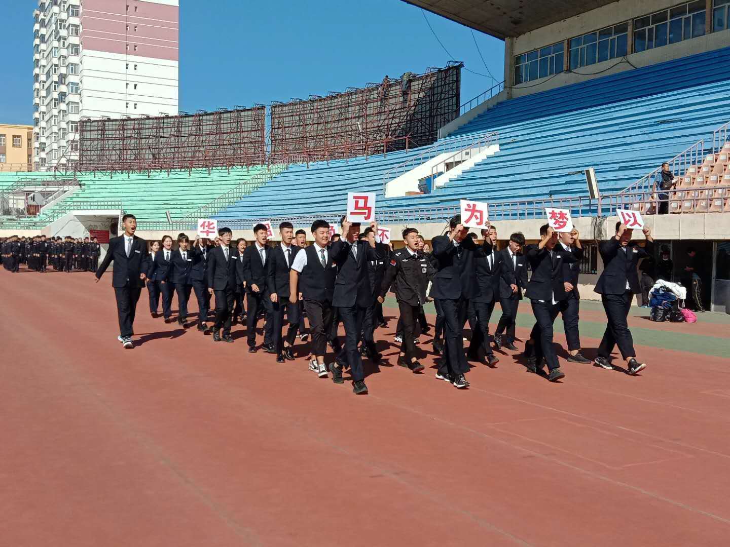 随着宣布运动会正式开始,各班队伍依次入场。此时进行曲骤然响起,一个又一个班级喊着高亢嘹亮的口号,排着整齐的队形,大踏步向主席台走来,他们个个精神抖擞,昂首阔步,展示出青年特有的朝气与活力。
