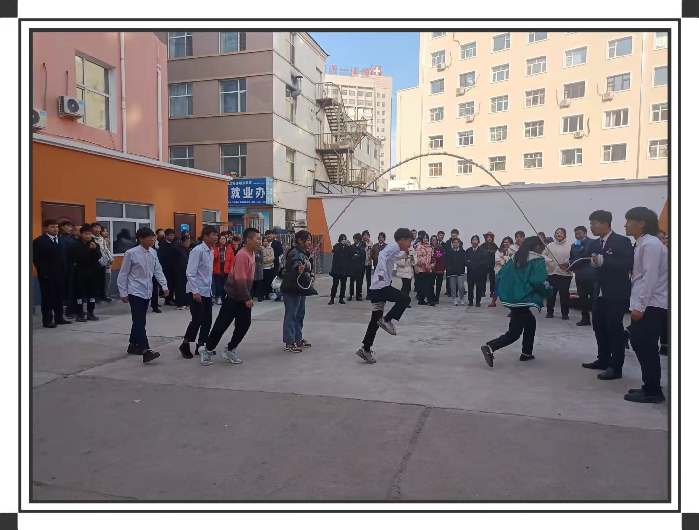 此次比赛凝聚了北旅中专的老师们以及同学们的激情,同学们积极报名参与,在班级预赛的基础上,每班选出12名选手参加学校的大绳比赛,选出4名选手参加学校的小绳比赛。赛前,被选出的选手怀着为班集体争光的信念,利用课间每天努力练习,在校园内掀起了一股跳绳热潮,全校同学你争我赶,积极备战。