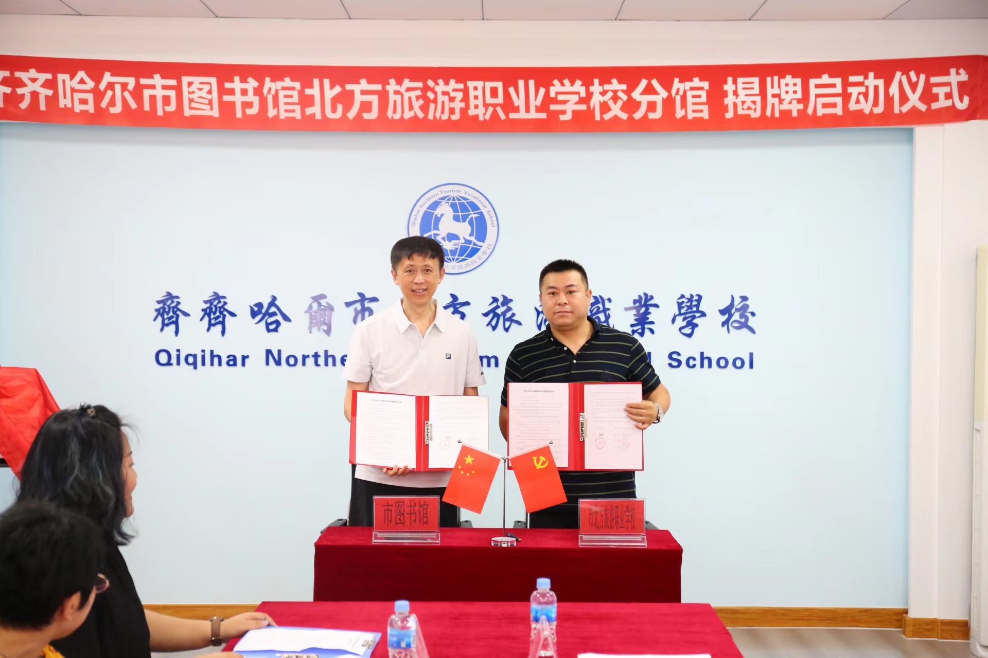 市文化广电和旅游局副局长王浩捷,市教育局副局长王宽,市文化广电和旅游局公共服务科科长王涛,市图书馆副馆长王晓光、李鹏及市北方旅游职业学校部分师生出席揭牌仪式。