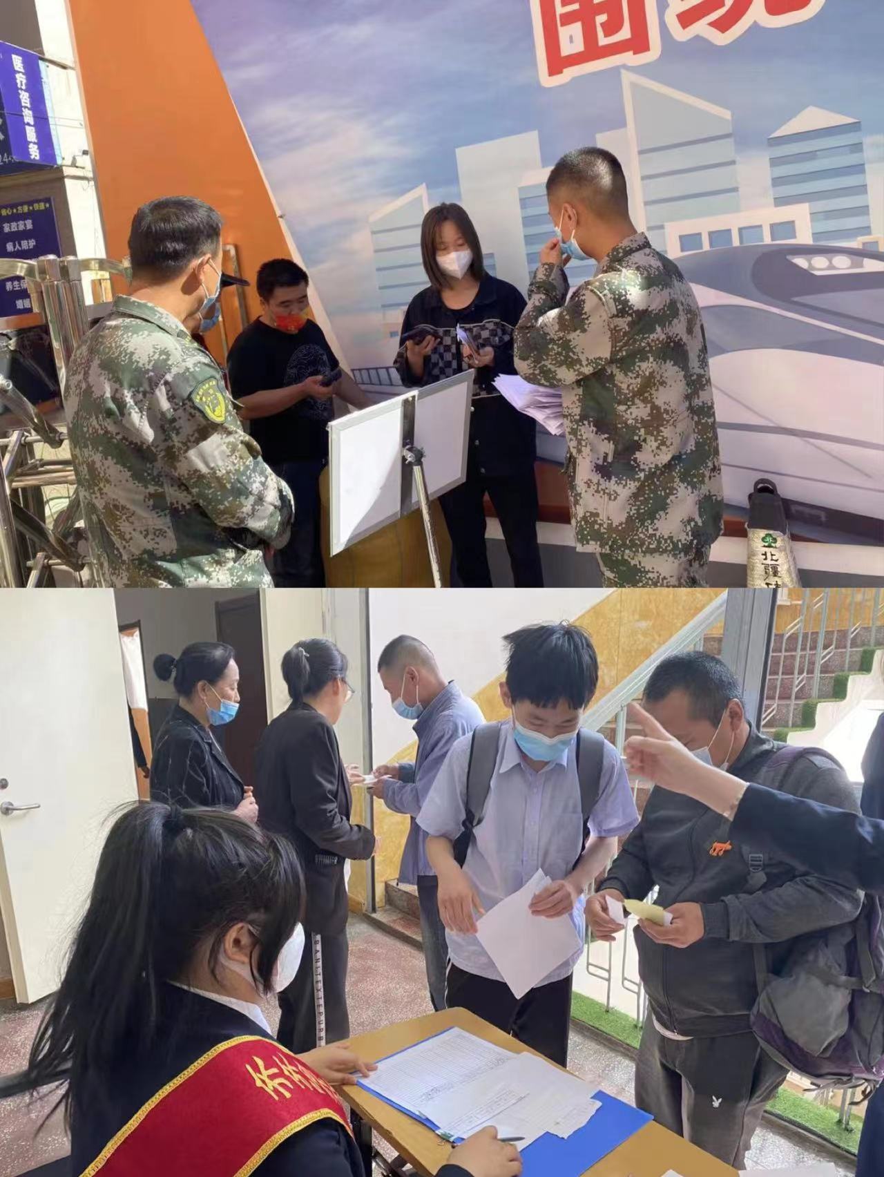 在学校大门口,疫情防控工作人员和志愿者要求入校新生及其家长全程佩戴口罩,引导学生和家长保持安全间隔距离有序排队,查验“健康码”“行程码”及疫苗接种情况、对学生和家长进行测量体温、消毒杀毒,完成各项“手续”后,方可通过专用通道进入校内,办理入学手续。