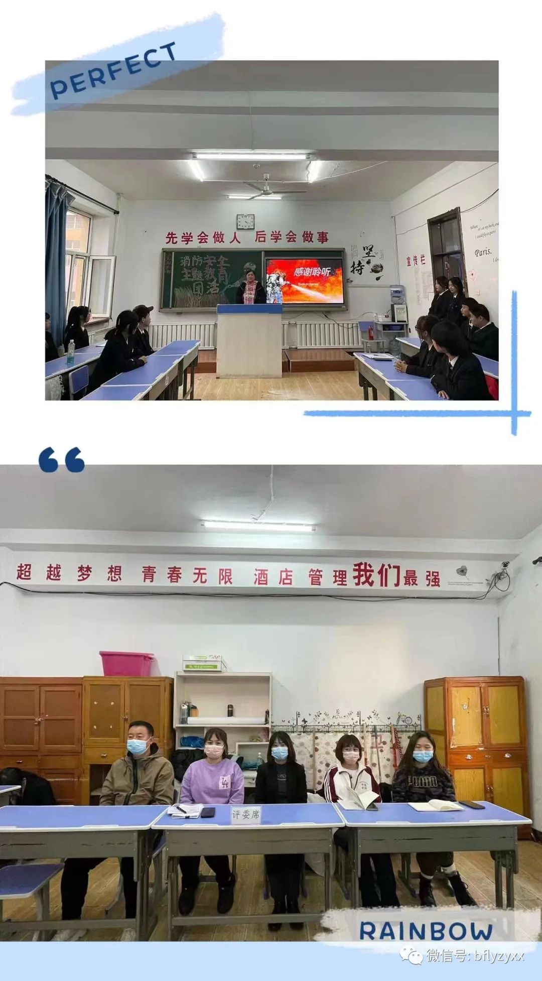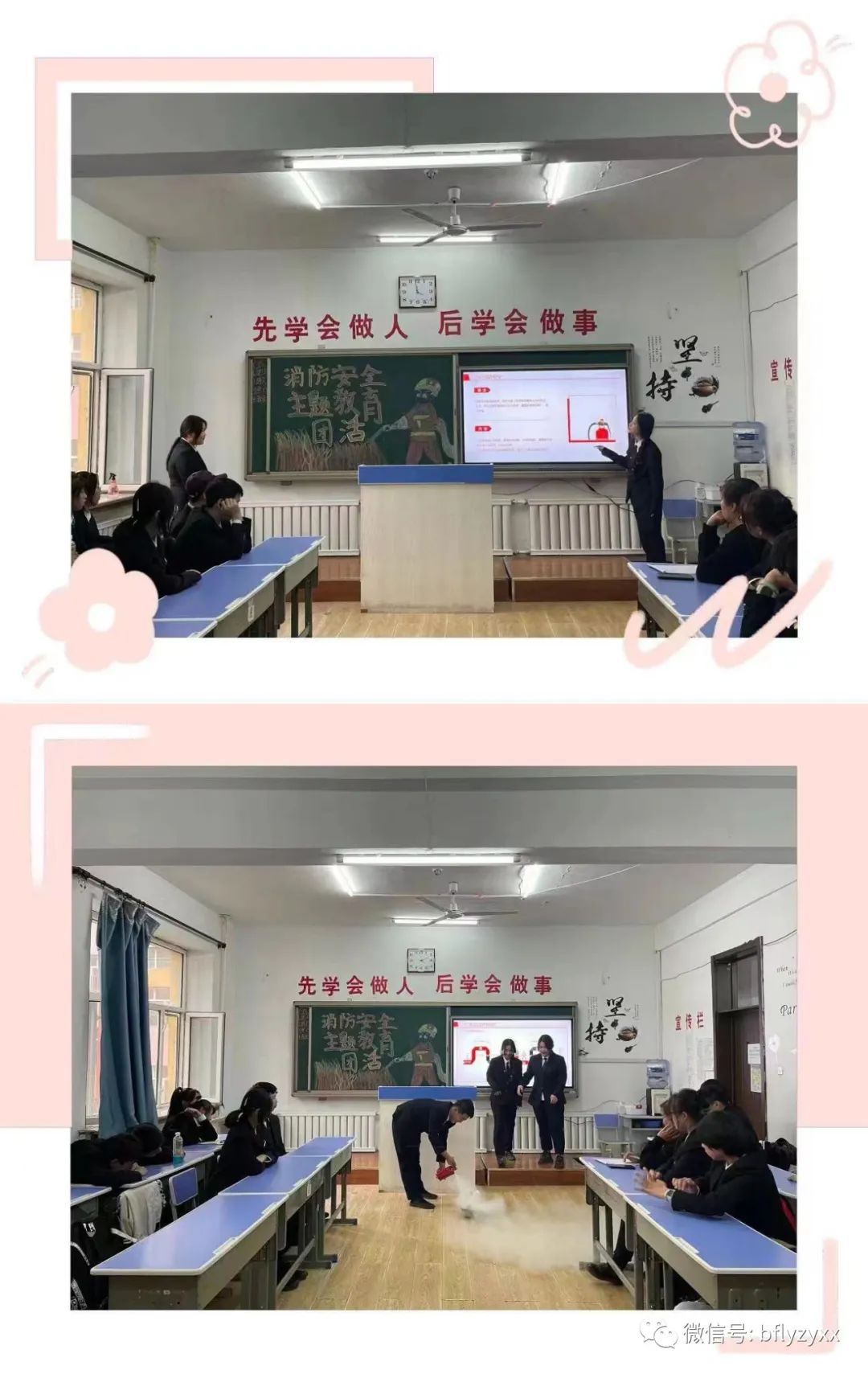 本次主题团活结合了班级的特点与需求,以讲述和演示的方式开展消防安全教育主题团活,不仅使同学们掌握了一些日常用火用电的安全小常识,更使消防安全意识的警钟在校园中长鸣。