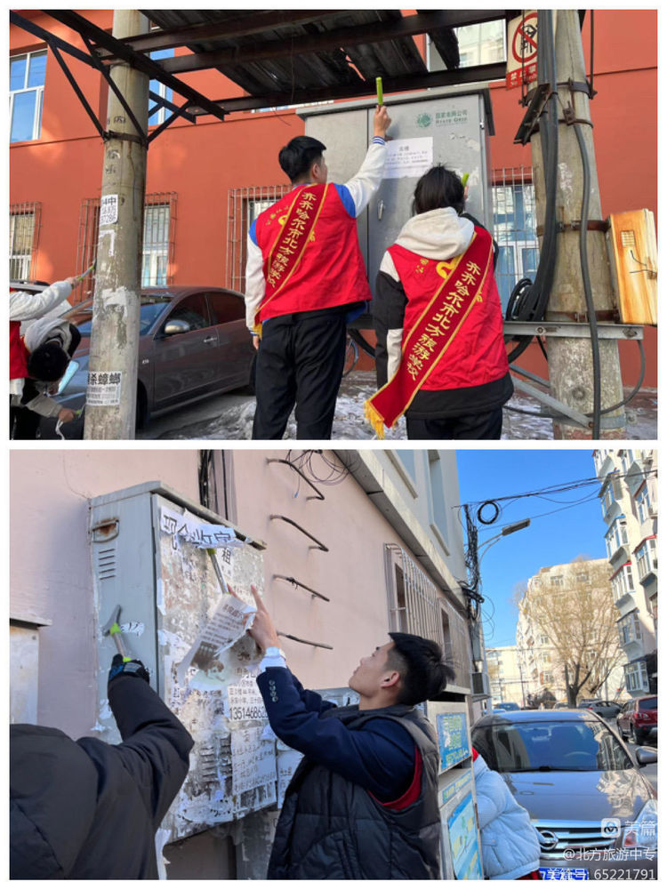 活动中,志愿者们弘扬“奉献、友爱、互助、进步”的志愿服务精神,对社区周边路段的积雪及张贴的小广告进行清理,营造“人人学雷锋、人人争做雷锋”的浓厚氛围。党员教师们带领团员青年团结协作,用自己的实际行动践行了雷锋精神,感受劳动带来的快乐,真正把雷锋精神落到实处并让雷锋精神薪火相传。