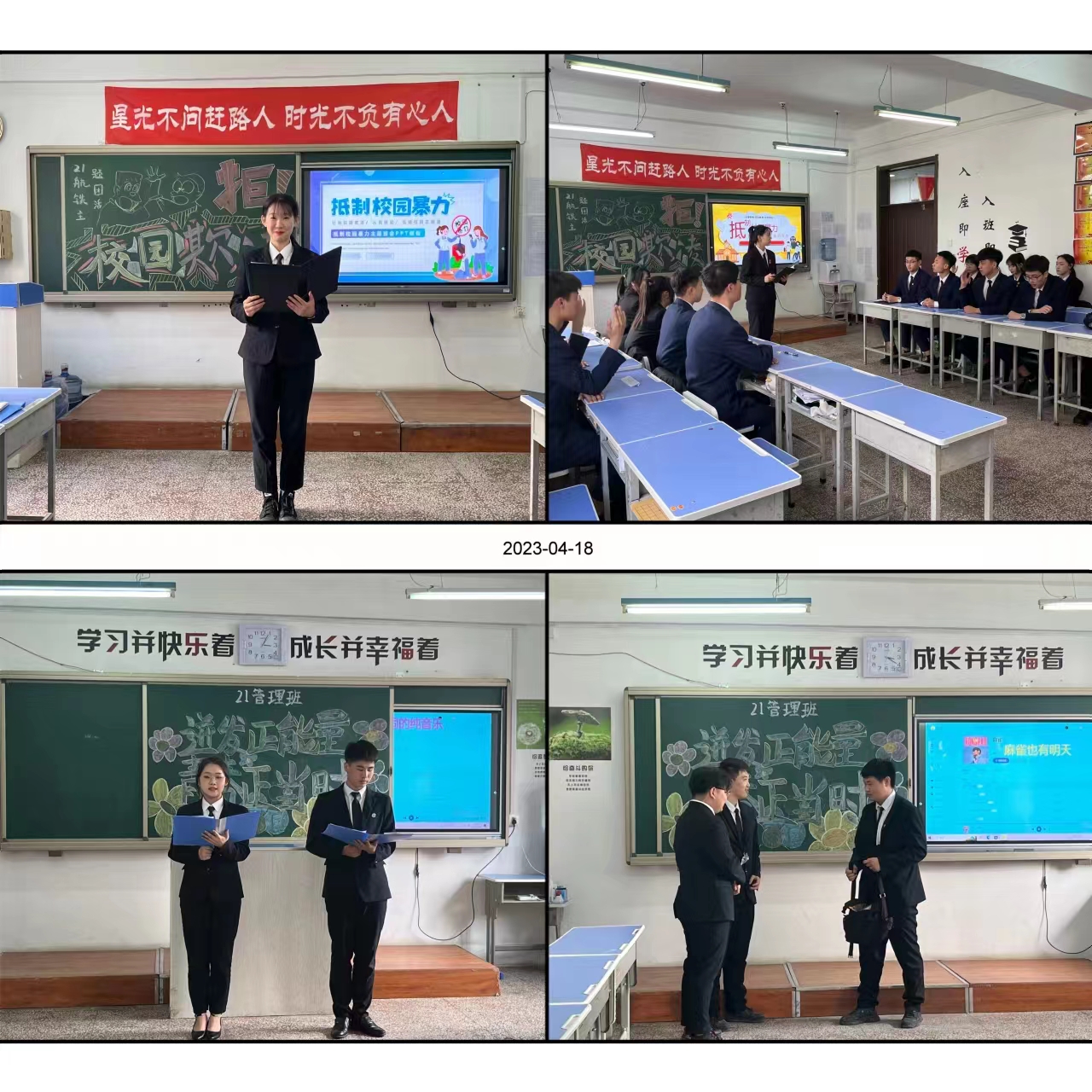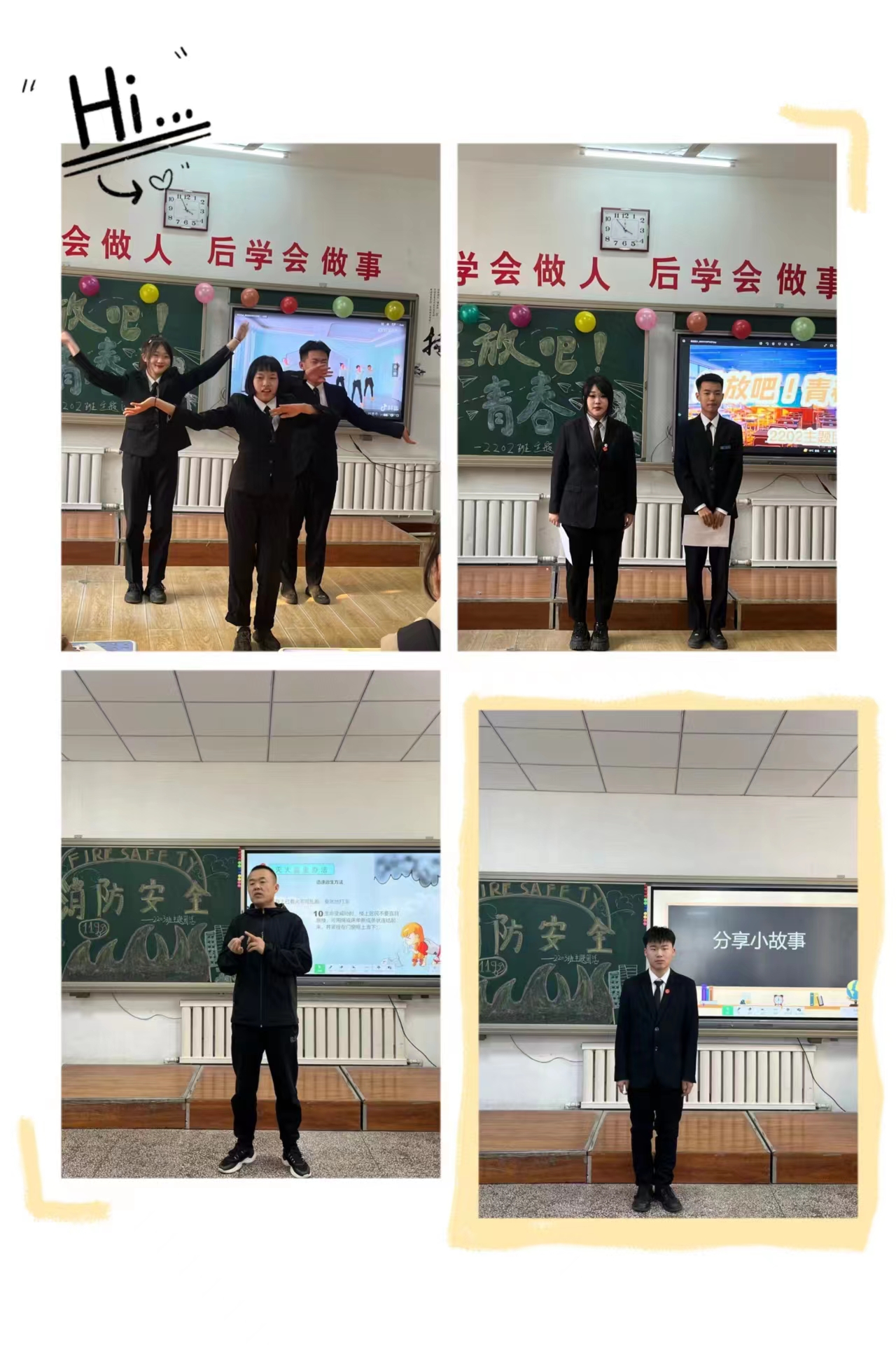 此次主题团日活动的选题,涉及到了“青春”、“消防安全”、“反校园霸凌”等多个积极向上的主题。各班团活的表现形式也是多种多样,内容丰富,让同学们真正参与到活动中,感受其中的乐趣。活动前期,各班精心准备了视频、图片、音频等材料,各班同学们在团活中各司其职,认真对待,投入了自己的激情,最后高效高质地完成了本次活动。