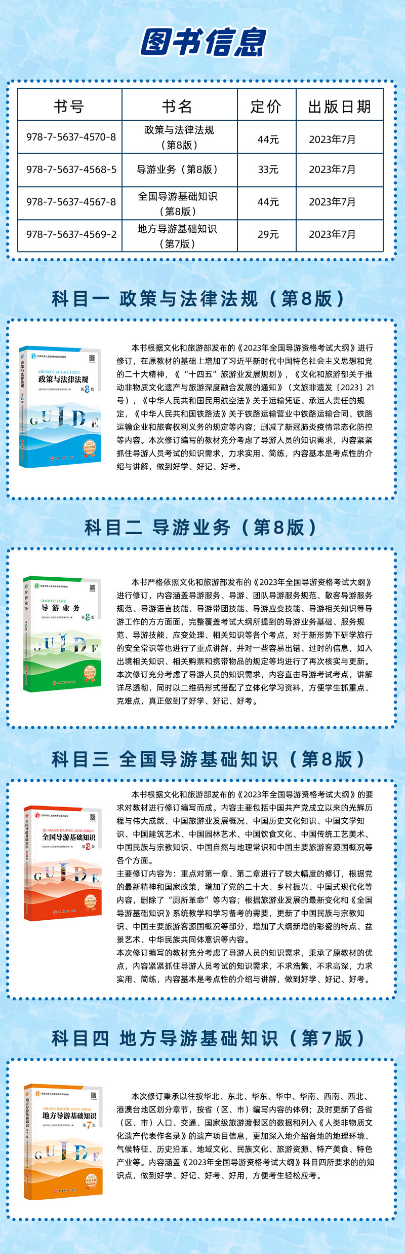 《政策与法律法规》《导游业务》《全国导游基础知识》《地方导游基础知识》