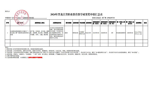 2024年黑龙江省职业教育教学成果奖申报汇总表
